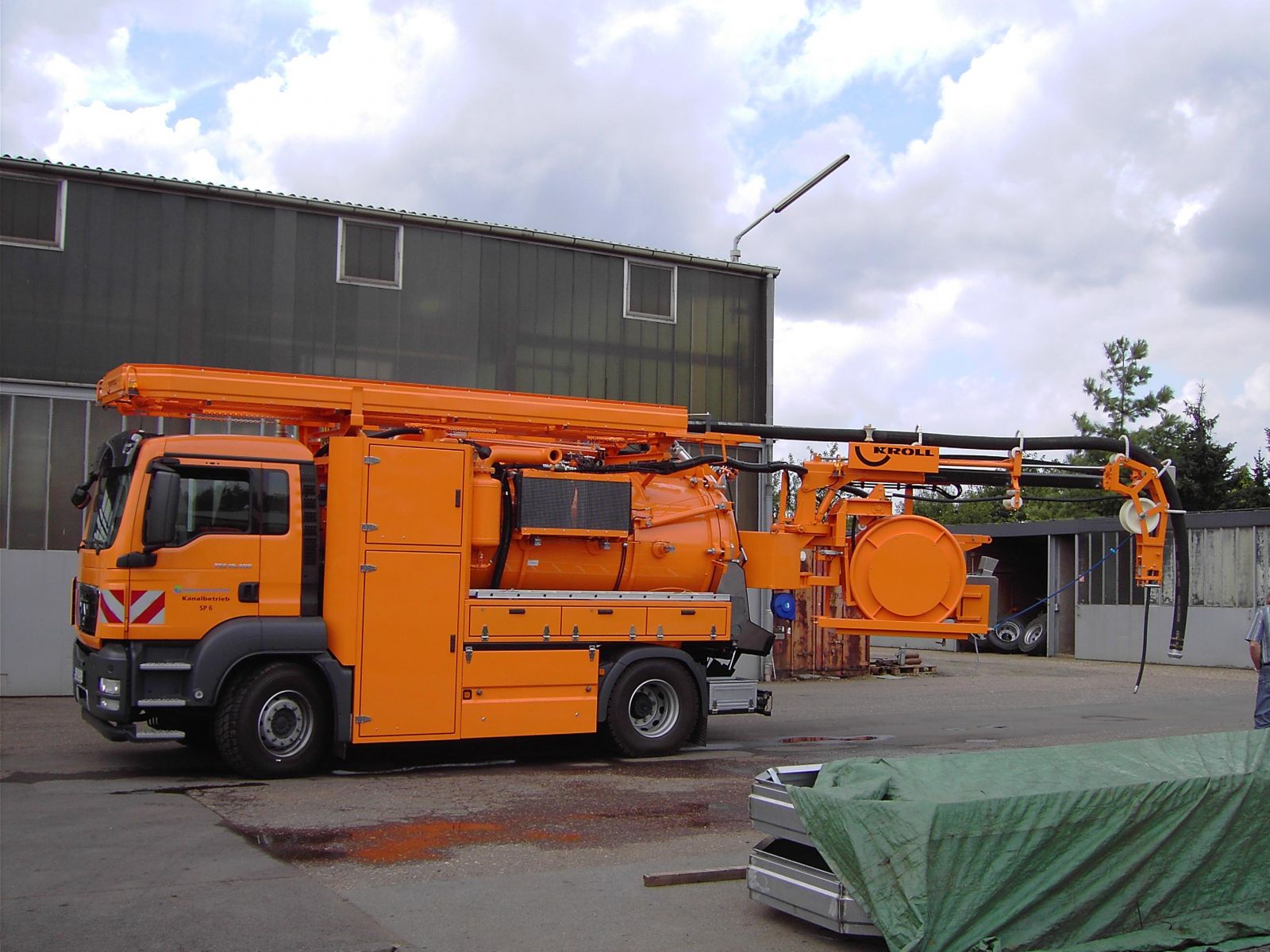 Sesalna cev, visokotlačne cevi, zavesa proti iztekanju, omare za orodje ali cevi na levi in desni strani, pištola za brizganje, halogenski delovni žaromet, korito za odpadke, itd.